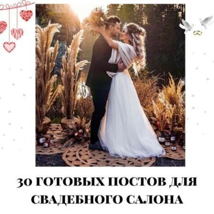 30 готовых постов для СВАДЕБНОГО САЛОНА Темы на которые есть готовые посты : 1. Почему мы? 2. Поговорим сегодня о